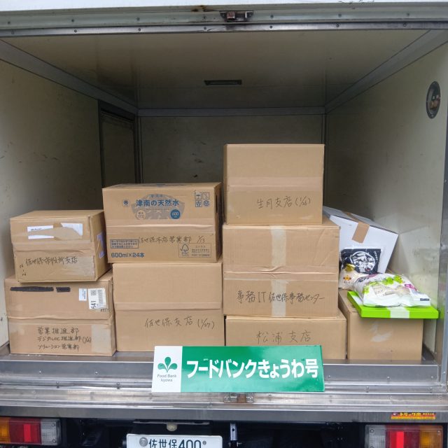 ⑦今回も佐世保市役所様を通してフードバンク協和が受領し登録支援先の子ども食堂や児童養護施設又障がい者福祉事業所様等へお渡しを致します。
