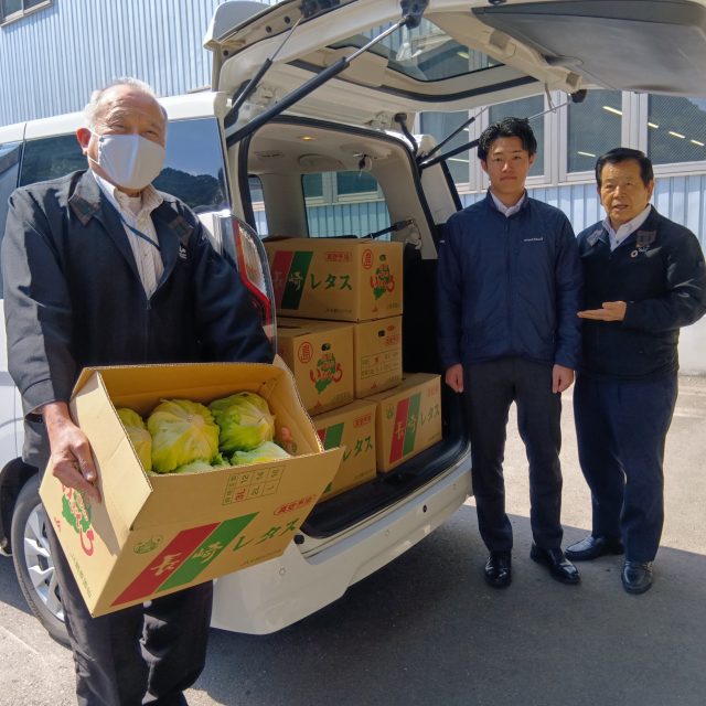 ②3/30日JA全農ながさき野菜課様より長崎県産レタス(12玉入り)を20ケース寄贈、又後日グリーンリーフ(レタス15玉入り)20ケースを寄贈して頂きました。(感謝!)